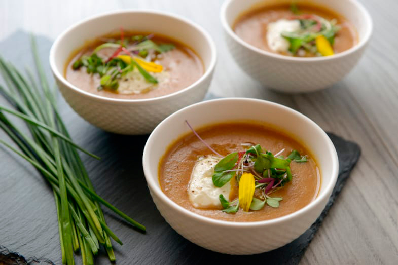 Eau, bouillon de légumes maison (eau, consommé de boeuf, bouillon de dinde, concentré de légumes (proétines de soya, de blé, de maïs hydrolysées, sulfites), sel, sauce tabasco), chou, oignon, tomate, céleri, carotte, riz, poivron vert, poibron rouge, mélange pour soupe à l’oignon (amidon de maïs, dextrose, shrtening non-hydrogéné, glutamate monosodique, caramel), ail, épices.